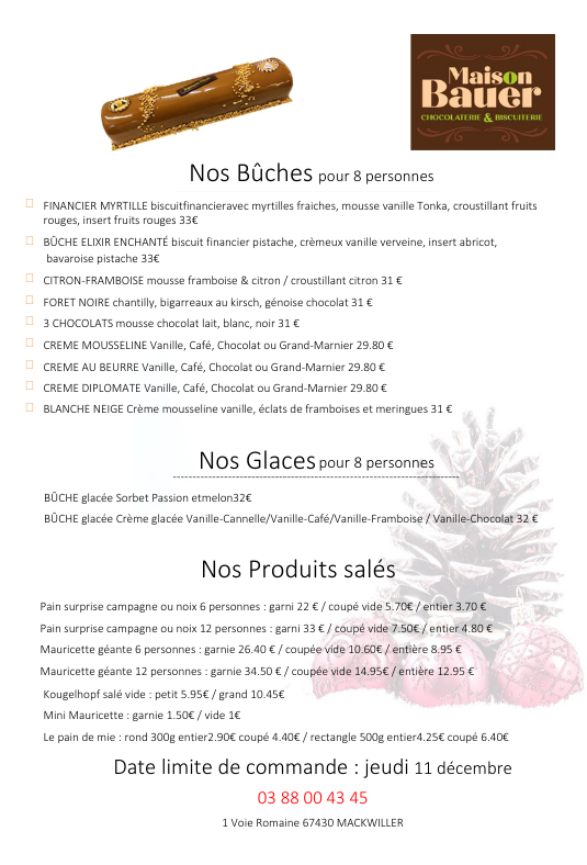 L’histoire de la Maison BAUER débute en 1949 lorsque son fondateur, Albert BAUER, ouvre une boulangerie-pâtisserie au village.