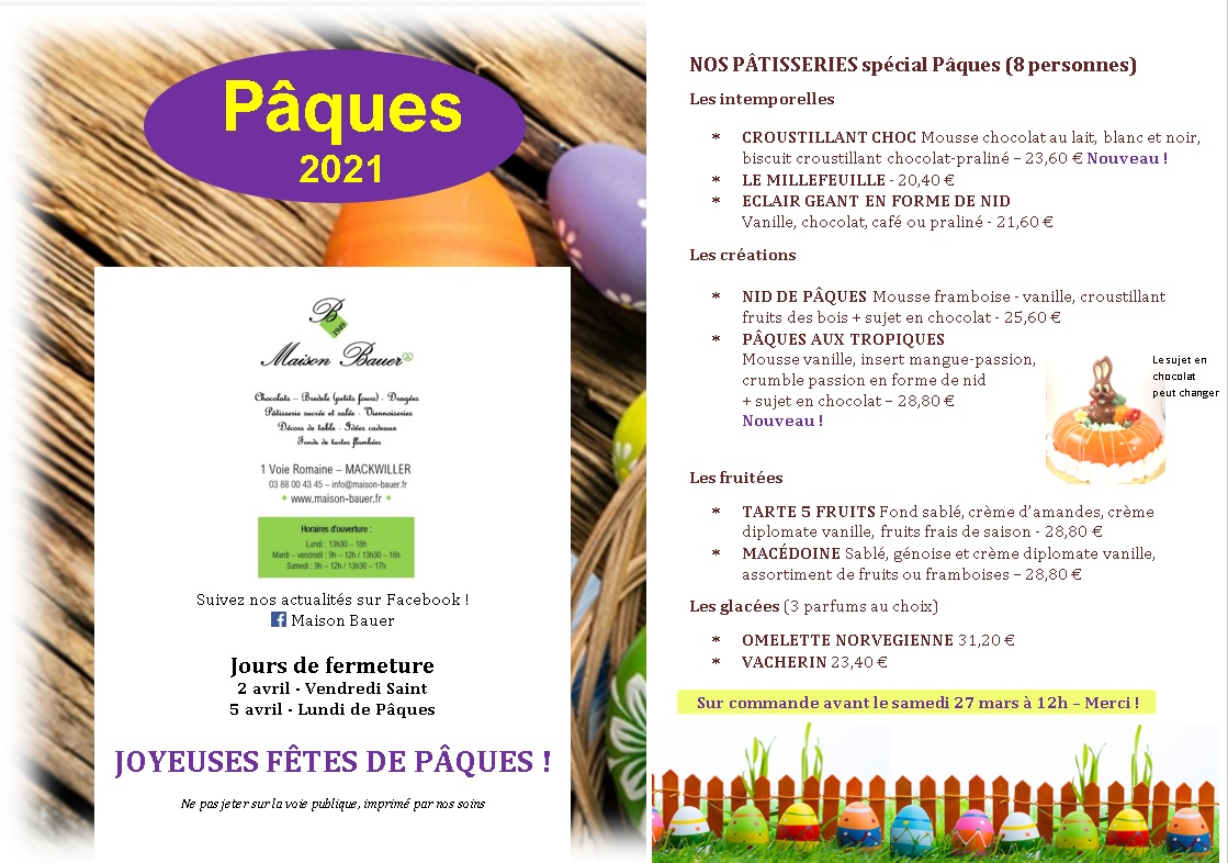 L’histoire de la Maison BAUER débute en 1949 lorsque son fondateur, Albert BAUER, ouvre une boulangerie-pâtisserie au village.