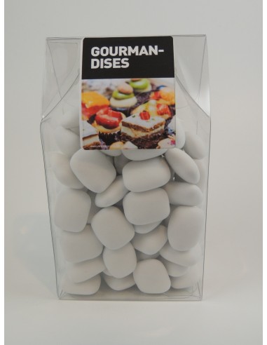 Ingrédients: carré de nougatine 43% (sucre, AMANDES, amidon de BLE, acidifiant: E330); sucre, chocolat noir 13% (cacao 54% min) (pâte et beurre de cacao,sucre, émulsifiant: lécithine de SOJA); gomme d'acacia, amidon de riz, sirop de glucose, arôme.