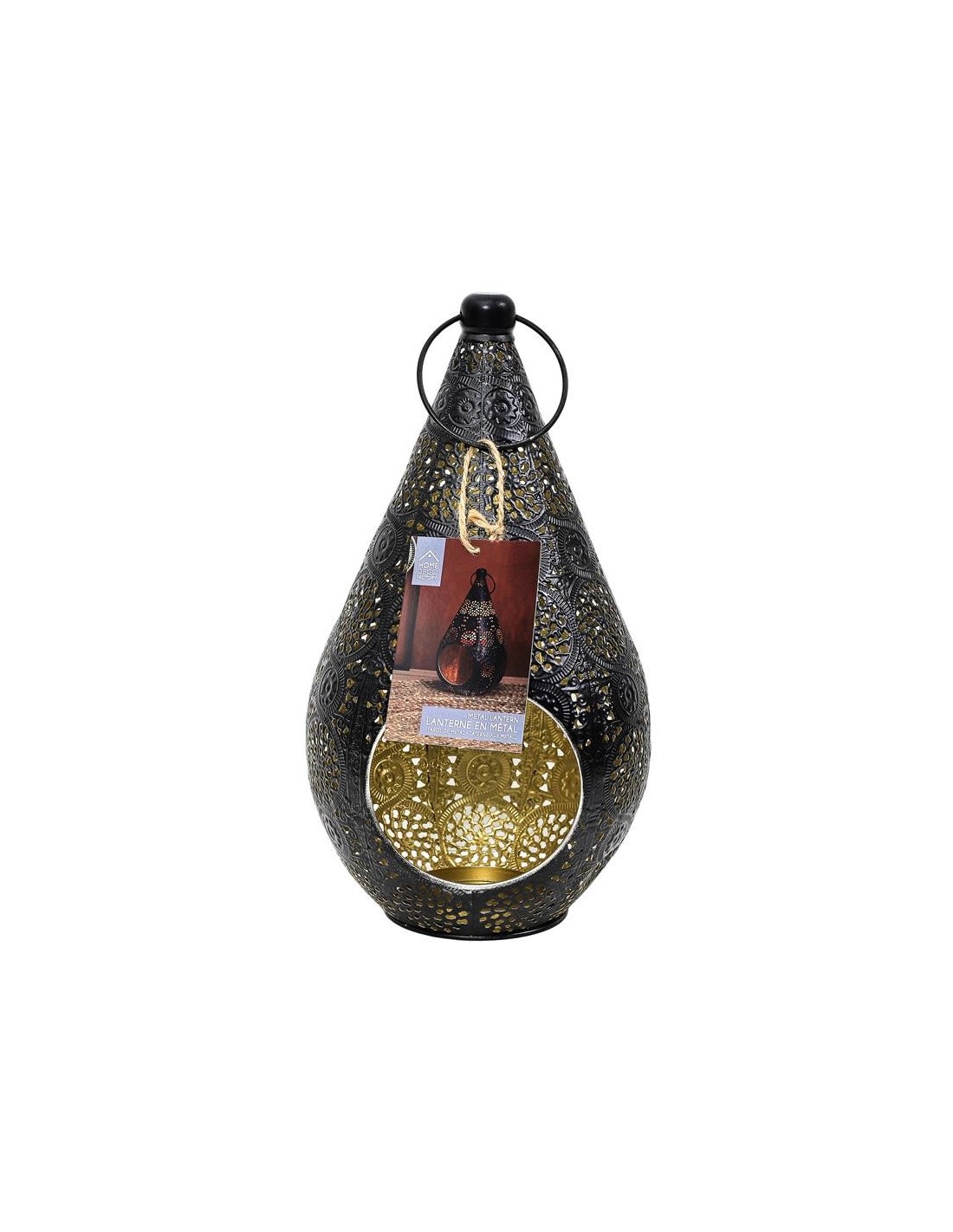 LANTERNE NOIR OR 19 X 33 X 17.5 .