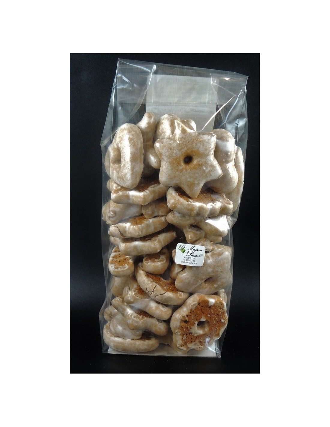 Ingrédients: farine de BLE, sucre, sirop de caramel, protéine de BLE, agents levants: bicarbonate de sodium, carbonate de potassium, bicarbonate d'ammonium et diphosphate; graisse végétale, épices, fécule de pomme de terre, blanc d'OEUFS en poudre, arômes naturels.